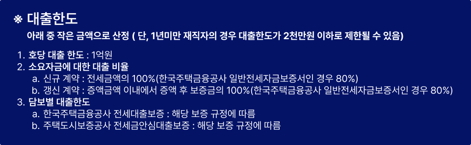 ④ 중복대출 금지 : 주택도시기금 대출, 은행 전세자금대출 및 주택담보대출 미이용자