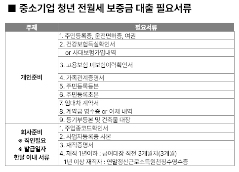 중소기업에 취업한 청년들에게 전월세 보증금 대출을 낮은 고정금리로 지원하는 사업
