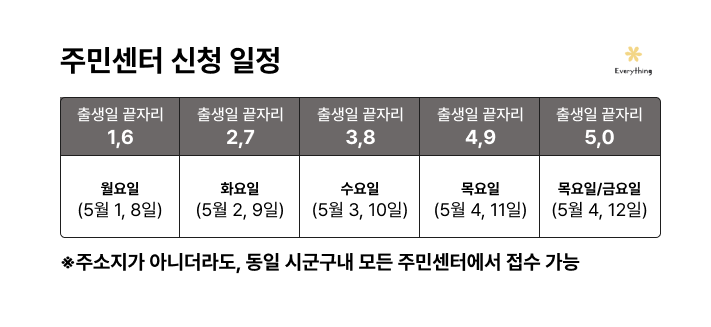 1) 읍면동 주민센터 신청: 2023.5.1.(월)~2023.5.26.(금)