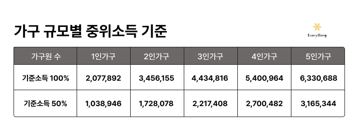 3) 가구 소득 조건 : 소득인정액 기준 중위소득 100% 이하