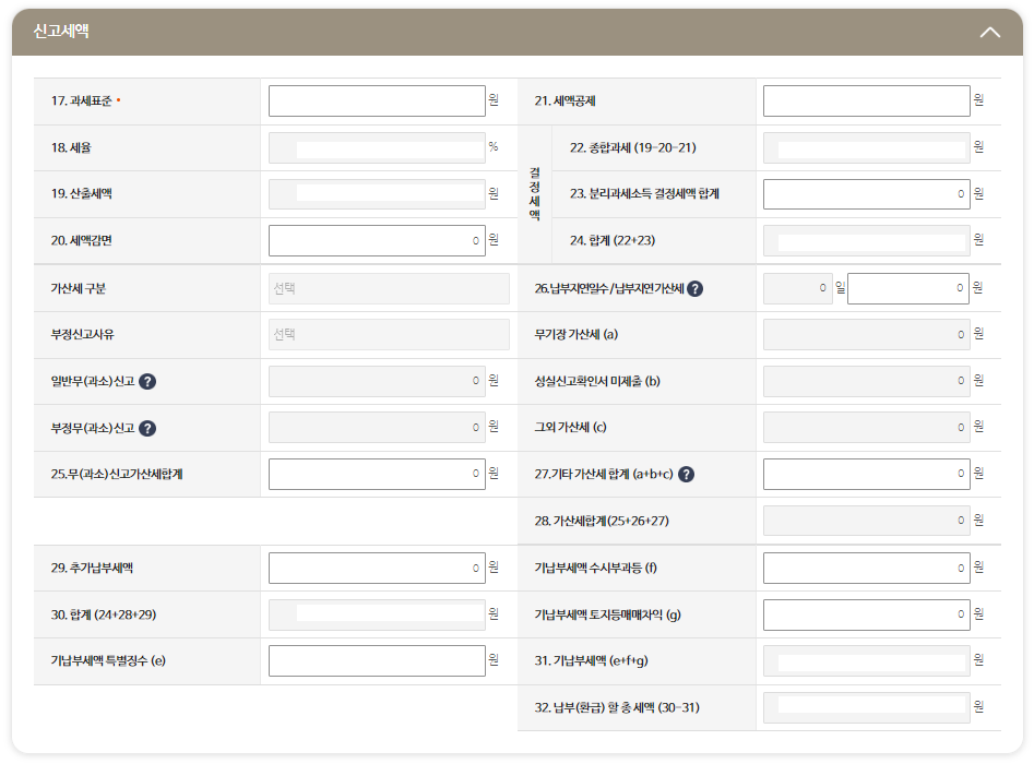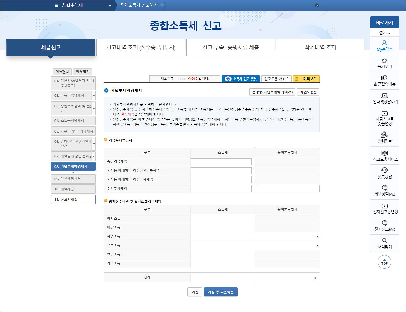 8) 가산세명세서 : 가산세액이 없는 경우 바로 다음 단계로 넘어갑니다.