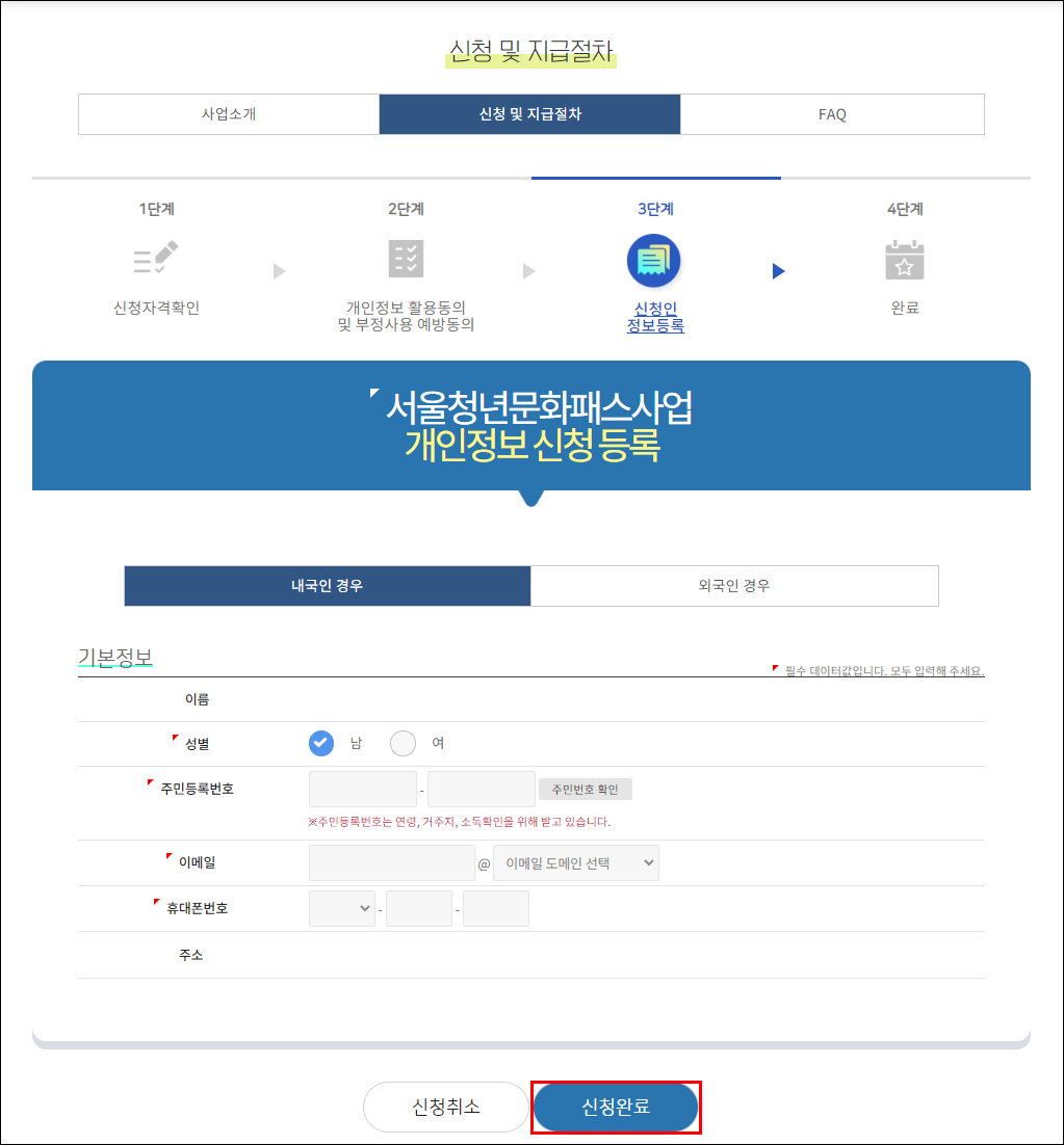 2) 주거 조건 : 신청일 기준 주민등록상, 외국인 등록대장상 서울 거주