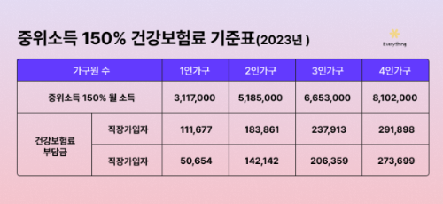 3) 소득 조건 : 중위소득 150%이하(건강보험료 기준)