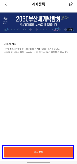 계좌 등록은 카드 등록보다 더 간단하게 진행됩니다.