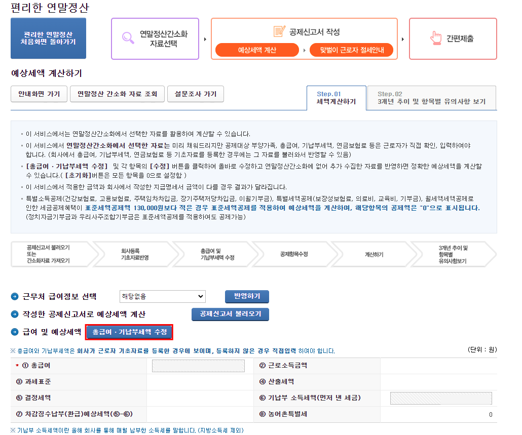 2. 총급여, 기납부세액 수정을 클릭합니다.