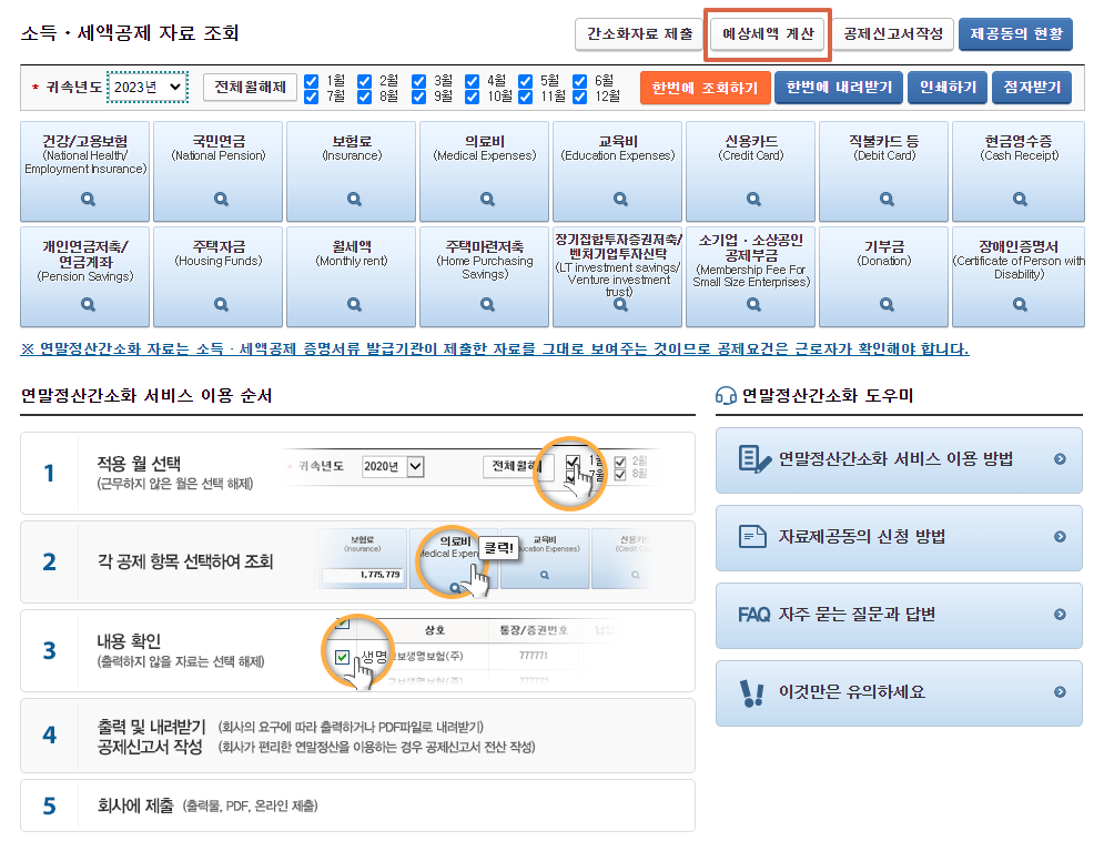 오늘은 가장 기본적으로 연말 정산시 홈텍스에서 연말정산 관련 서류를 취합하는 방법과 예상 세액을 계산하는 방법에 대해 알아보겠습니다.