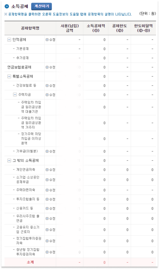 5. 소득공제에 있는 계산하기를 클릭합니다.